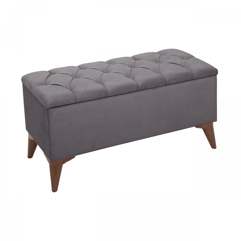 Σκαμπό-μπαούλο Elone pakoworld γκρι-καρυδί 90x40x44εκ