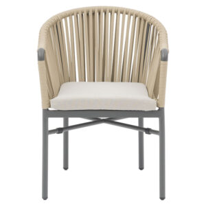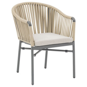 Πολυθρόνα κήπου Ditte pakoworld αλουμίνιο ανθρακί-σχοινί ύφασμα μπεζ