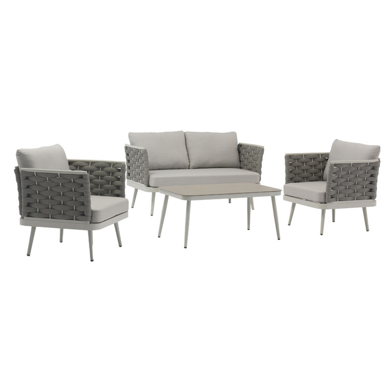 Σαλόνι κήπου Moritz pakoworld σετ 4τμχ αλουμίνιο γκρι-textilene γκρι-μαξιλάρι μπεζ