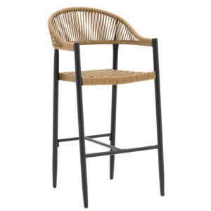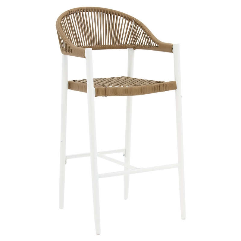 Σκαμπό μπαρ Kerr pakoworld pe rattan φυσικό-λευκό πόδι