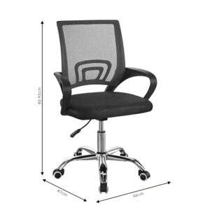 * Η πλάτη επενδύεται με ειδικό ανθεκτικό διάτρητο δίχτυ/ύφασμα και η έδρα με ύφασμα Mesh που επιτρέπει την κυκλοφορία του αέρα και αποτρέπει την εφίδρωση του σώματος, προσφέρεται σε μαύρο χρώμα.