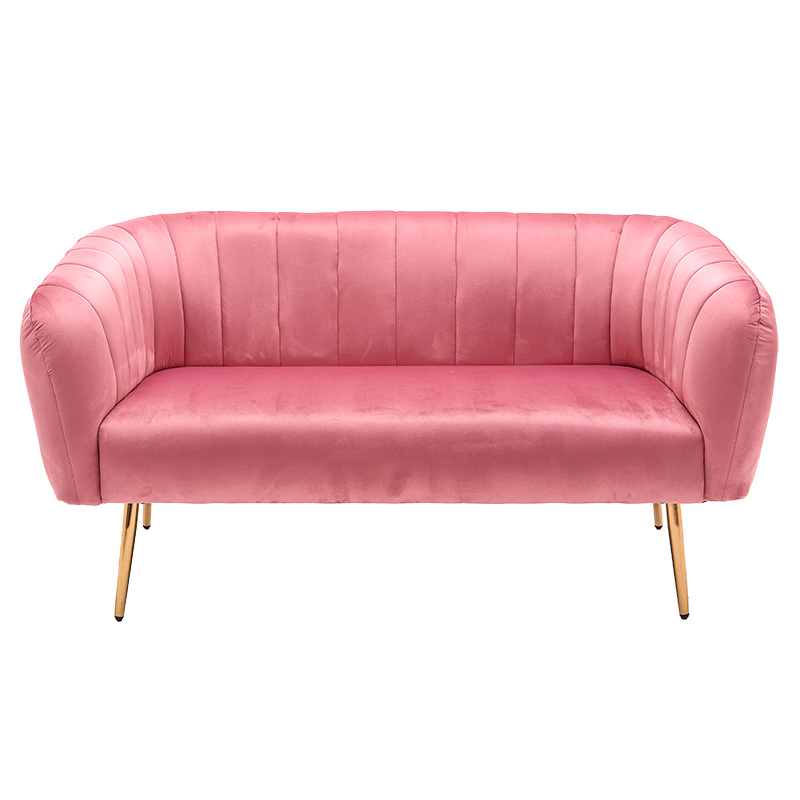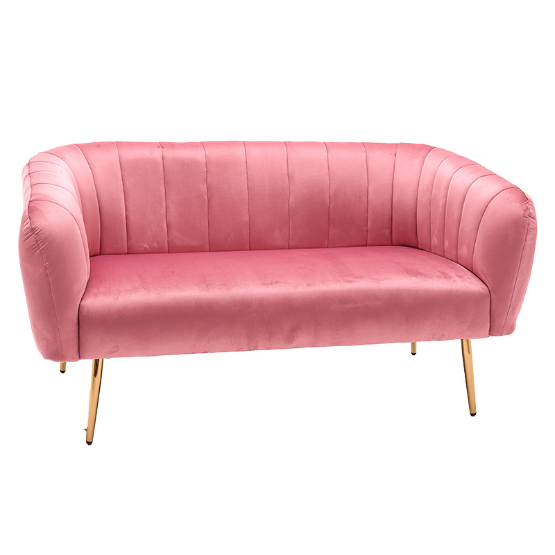 Καναπές 2θέσιος Rome pakoworld βελούδο ροζ-χρυσό 142x75x72εκ