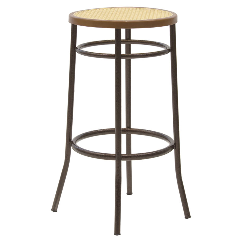 Σκαμπό μπαρ Βιέννης pakoworld pe rattan εκρού-μέταλλο καφέ σφυρήλατο Φ40×77εκ.
