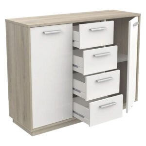 Φέρει 4 συρτάρια και δύο ντουλάπια