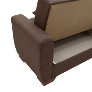* Ανασηκώνοντας τη βάση του καναπέ, έχουμε ένα ευρύχωρο μπαούλο αποθήκευσης χωρισμένο σε δύο μέρη 59x83x16εκ, με ενισχυμένο πάτο από μοριοσανίδα για αντοχή στο βάρος.