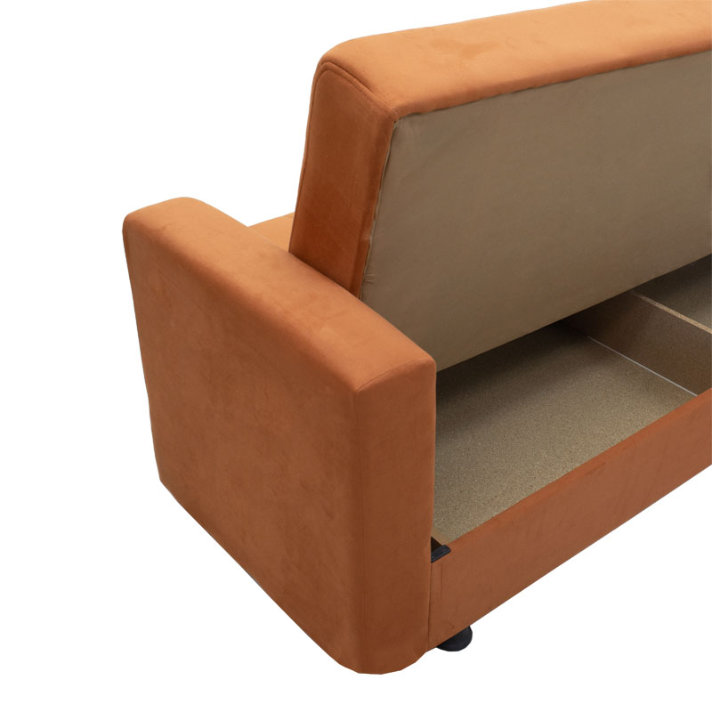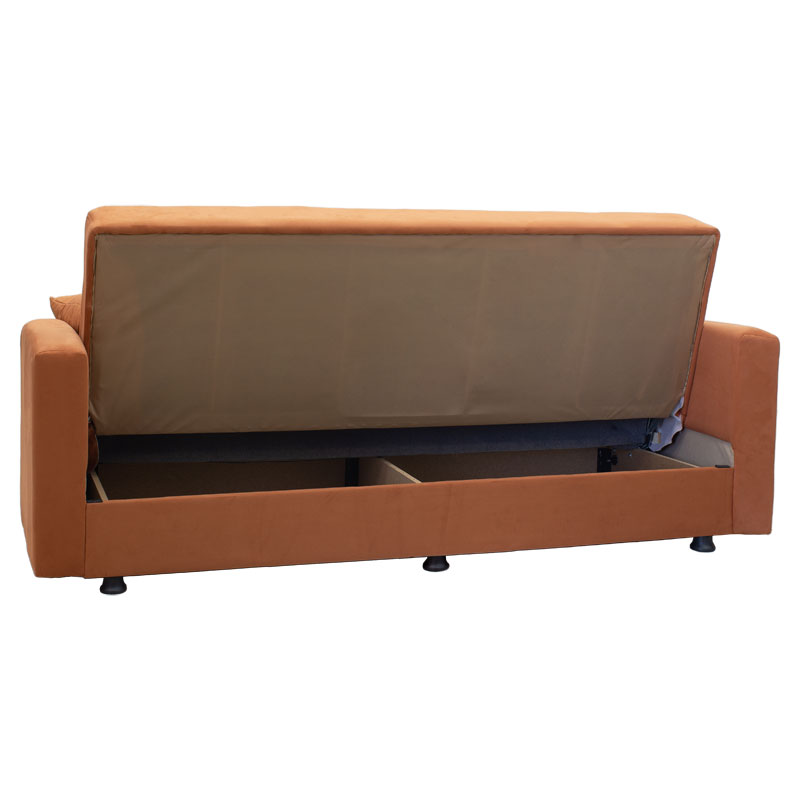 * Ανασηκώνοντας τη βάση του καναπέ, έχουμε ένα ευρύχωρο μπαούλο αποθήκευσης χωρισμένο σε δύο μέρη 83x59x14εκ με ενισχυμένο πάτο για αντοχή στο βάρος.