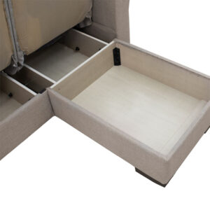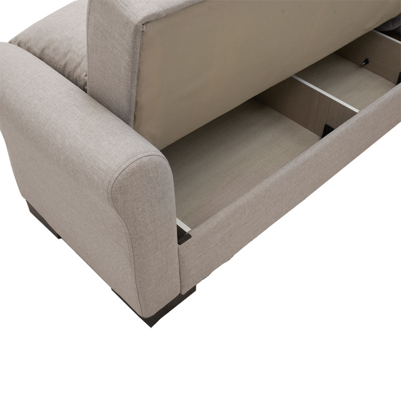 * Ανασηκώνοντας τη βάση του καναπέ έχουμε ευρύχωρους χώρους αποθήκευσης διαστάσεων: 74x56x18 και 59x73x18, με ενισχυμένο πάτο για αντοχή στο βάρος.