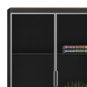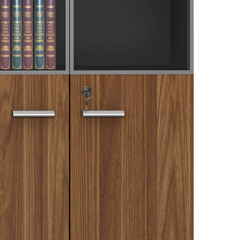 Ντουλάπα γραφείου με γυάλινες πόρτες Oscar pakoworld καρυδί-ανθρακί 80x40x200εκ