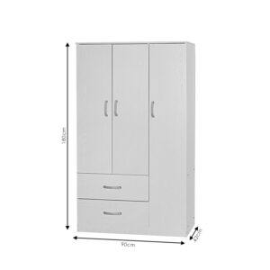 Ντουλάπα ρούχων τρίφυλλη Zelia pakoworld με 2 συρτάρια χρώμα λευκό 90x42x180εκ