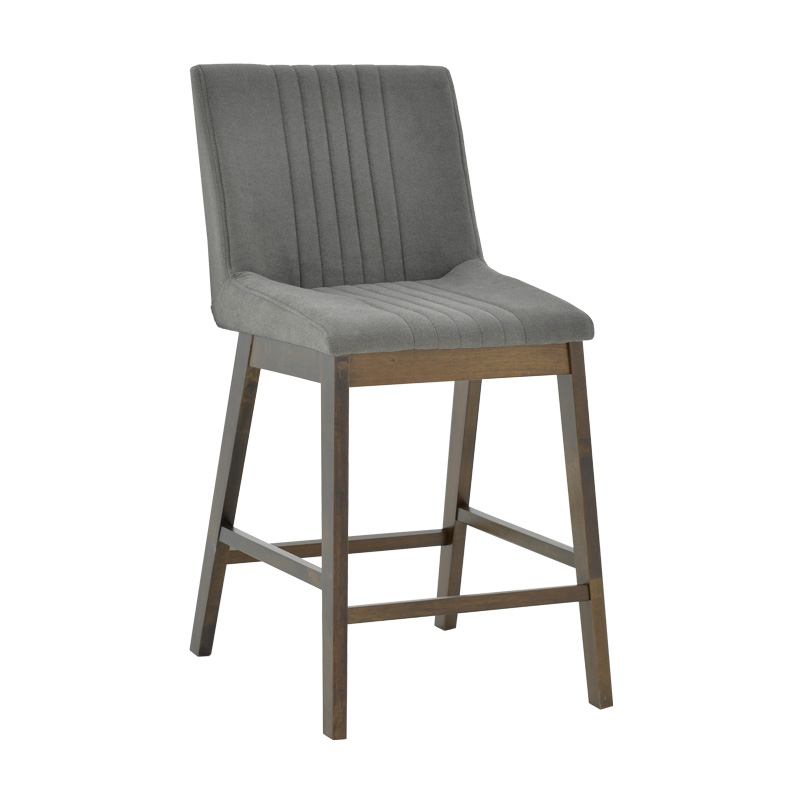 Σκαμπό μπαρ Siera pakoworld ανθρακί ύφασμα – πόδια rubberwood καρυδί 45x58x95εκ.
