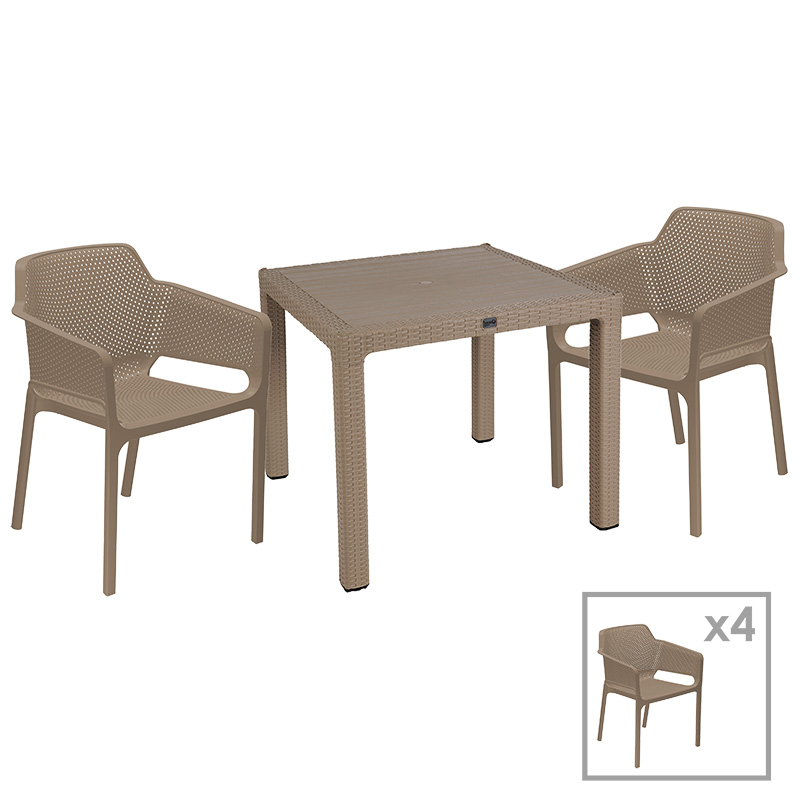 Τραπεζαρία κήπου Explore-Integral pakoworld σετ 5τεμ PP cappuccino 90x90x73,5εκ