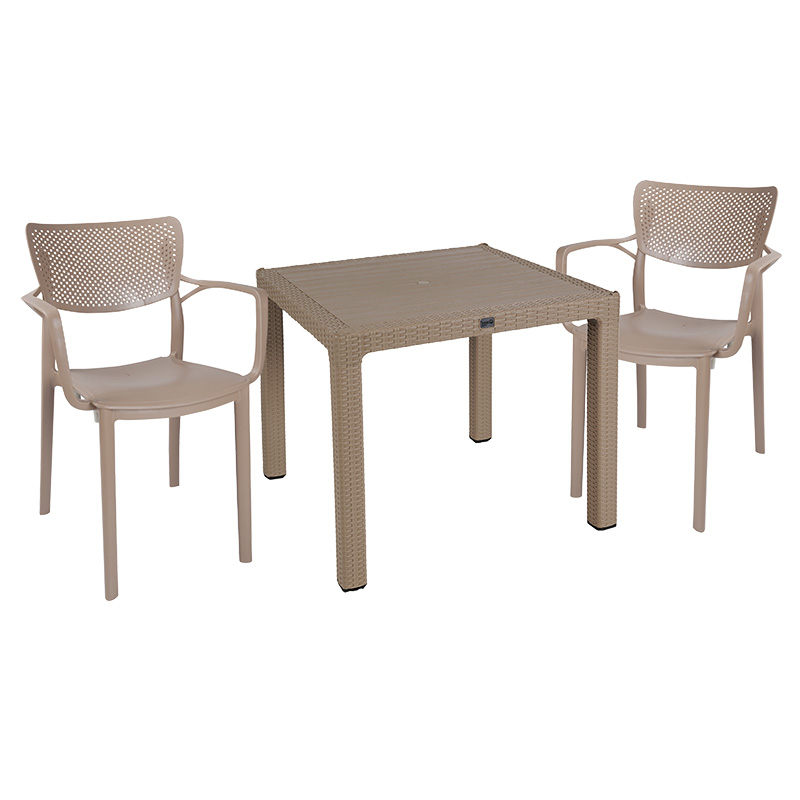 Τραπεζαρία κήπου Explore-Frontline pakoworld σετ 3τεμ PP cappuccino 90x90x73,5εκ.