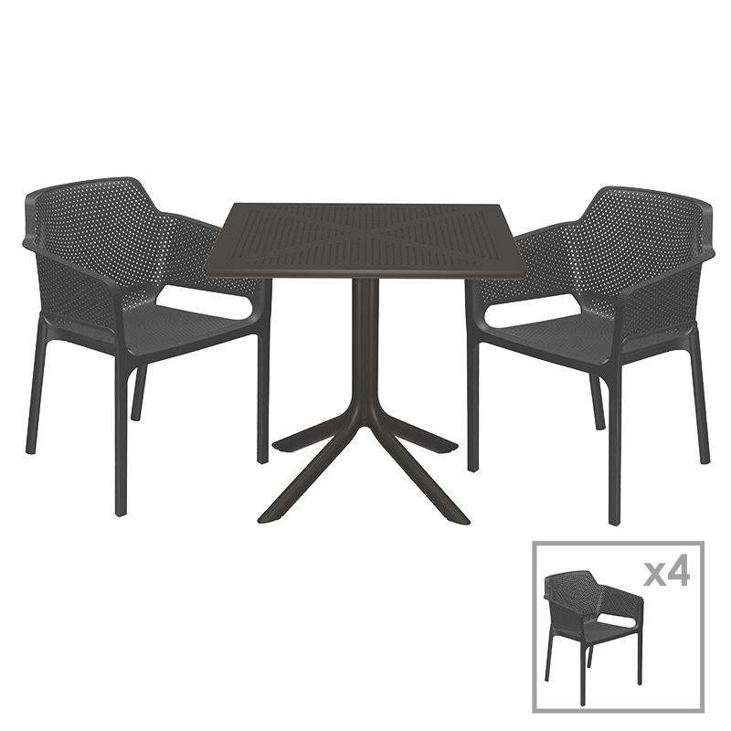 Τραπεζαρία κήπου Groovy-Integral pakoworld σετ 5τεμ PP ανθρακί 80x80x74,5εκ