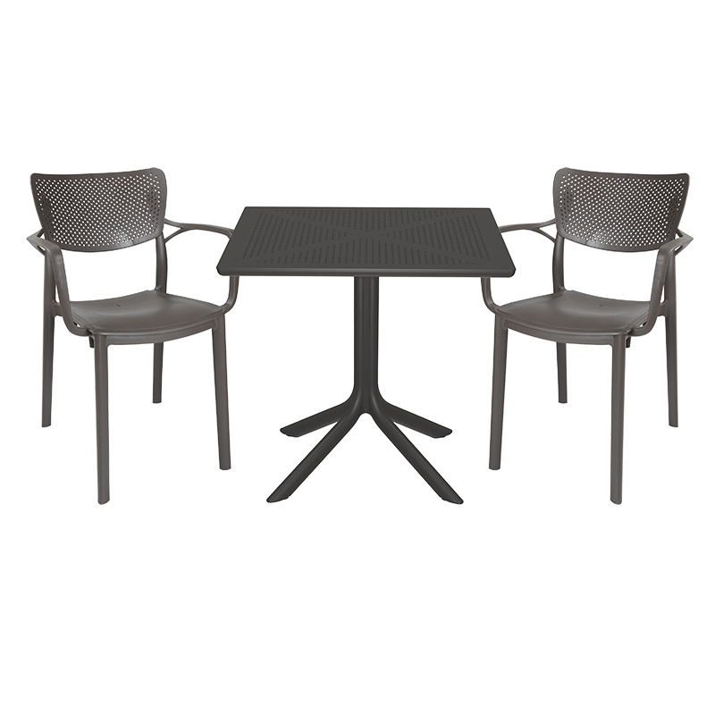 Τραπεζαρία κήπου Groovy-Frontline pakoworld σετ 3τεμ PP ανθρακί 80x80x74,5εκ.