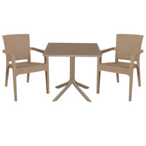 253-000100 Τραπεζαρία κήπου Groovy-Festive pakoworld σετ 3τεμ PP cappuccino 80x80x74,5εκ.
